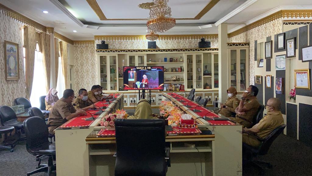 jejakkasus.co.id, TANGGAMUS – Pemerintah Kabupaten (Pemkab) Tanggamus mengikuti penilaian Sistem Akuntabilitas Kinerja Instansi Pemerintahan (SAKIP) dari Menteri PanRB di Ruang Rapat Bupati Sekretariat Daerah, Selasa (5/4/2022).