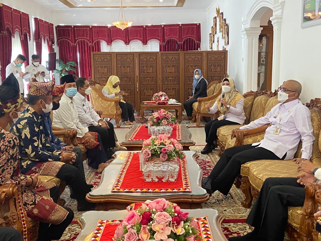jejakkasus.co.id, TANGGAMUS – Bupati Tanggamus Hj. Dewi Handajani menerima Audiensi dari Bujang Enton dan Mulli Enton Kebandakhan Talang Padang Marga Gunung Alip yang membawahi Mulli Mekhanai 27 Penyimbang Adat bertempat di Rumah Dinas Bupati, Kecamatan Kotaagung, Kabupaten Tanggamus, Provinsi Lampung, Rabu (6/4/2022).