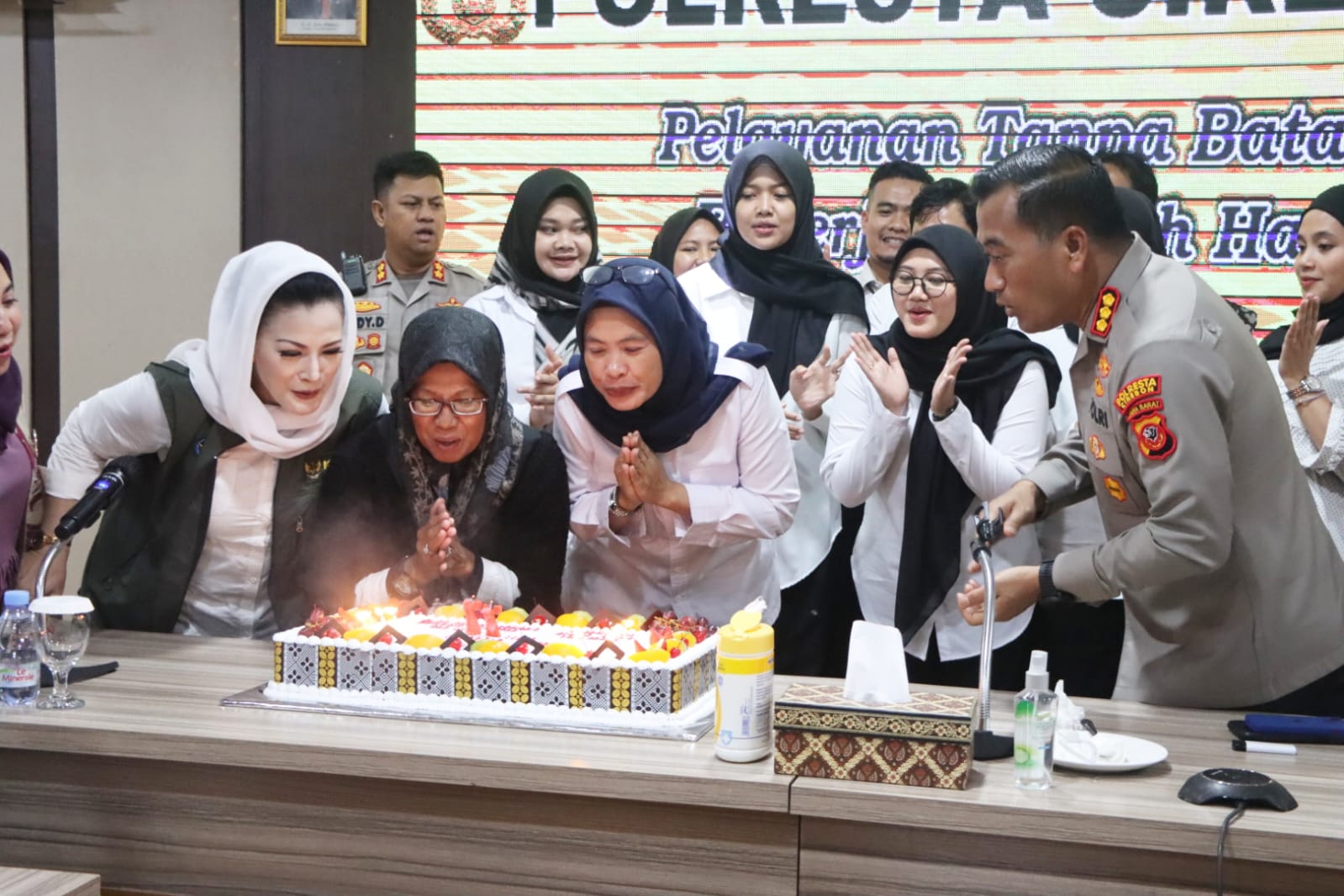 Selanjutnya Kapolresta Cirebon Kombes Pol Arif Budiman, S.I.K., M.H., didampingi Wakapolresta AKBP Dedy Darmawansyah, S.I.K., S.H., M.H., serta para Pju Polresta Cirebon, juga mendapat kejutan dari Ketua KPAID Kabupaten Cirebon Hj. Fifi Sofiah beserta jajarannya.