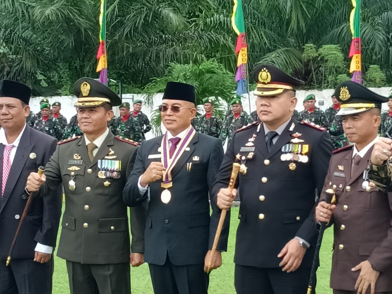 Hadir Bupati Bengkulu Selatan Gusnan Mulyadi, S,E, M.M., Dandim 0408/BS Letkol Inf. Aswin Suladi, S.E.,M.AK., Kajari Bengkulu Selatan Hendri Hanafi, S.H.,M.H., Wabup Kaur Herlian Muchrim, Kapolres Bengkulu Selatan AKBP Juda Trisno Tampubolon, S.H., S.I.K., M.H., Kapolres Kaur AKBP Dwi Agung Setiono, S.I.K., M.H., Ketua FKPPI Herman Sunarya, Kasdim 0408/BS Mayor Inf. Surung Tambun, Pabung Kabupaten Kaur Mayor Inf. Sumaryanto, Pasiter Dim 0408/BS Kapten Inf. Imyati.