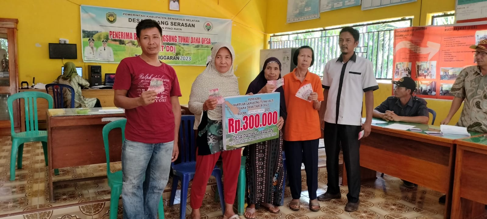 jejakkasus,co,id, BENGKULU SELATAN – Pemerintah Desa (Pemdes) Padang Serasan realisasikan Bantuan Langsung Tunai Dana Desa (BLT-DD) ke 4, 5 dan 6 Tahun Anggaran (TA) 2023 di Balai Desa Padang Serasan, Kecamatan Pino Raya, Kabupaten Bengkulu Selatan, Bengkulu, Selasa (13/4/23).