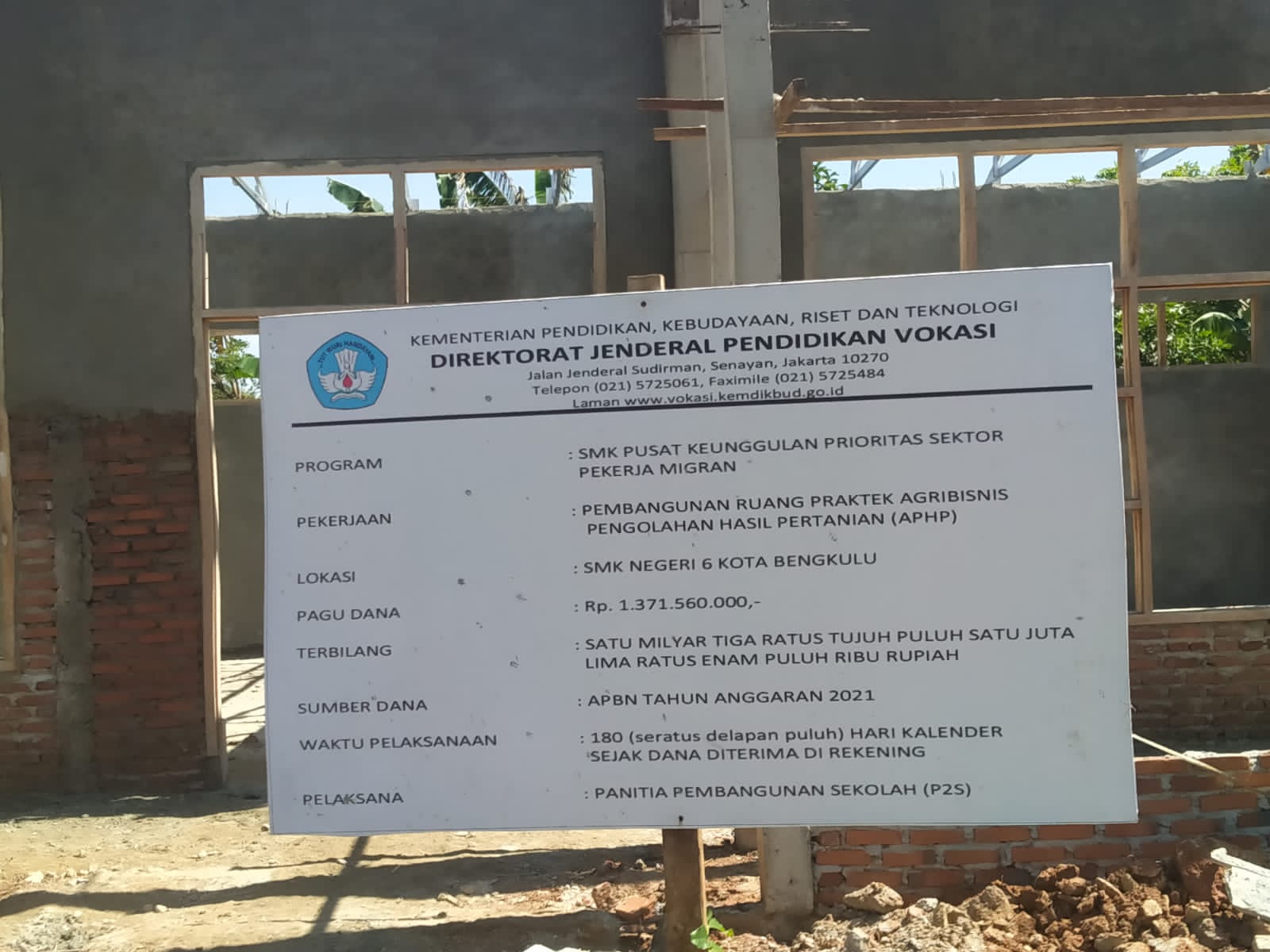 Mohon kepada Pemerintah Pusat untuk memantau dan mengawasi proyek pembangunan Gedung SMKN 6 Kota Bengkulu yang memakai uang negara dari APBN 2021 sebesar satu milyar lebih diduga hanya untuk memperkaya diri sendiri. (Tim)