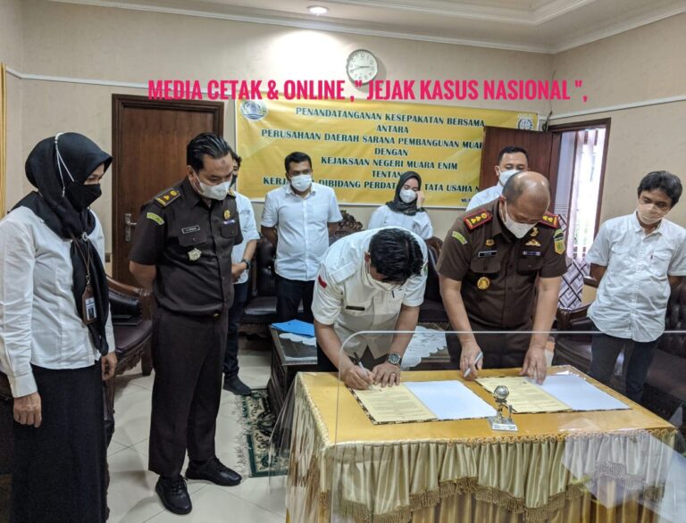MUARA ENIM- JK. Dirut PD. SPME Novriansah Regan, S.Hut., didampingi jajaran stafnya serahkan Perjanjian Kerjasama Pendampingan Hukum...