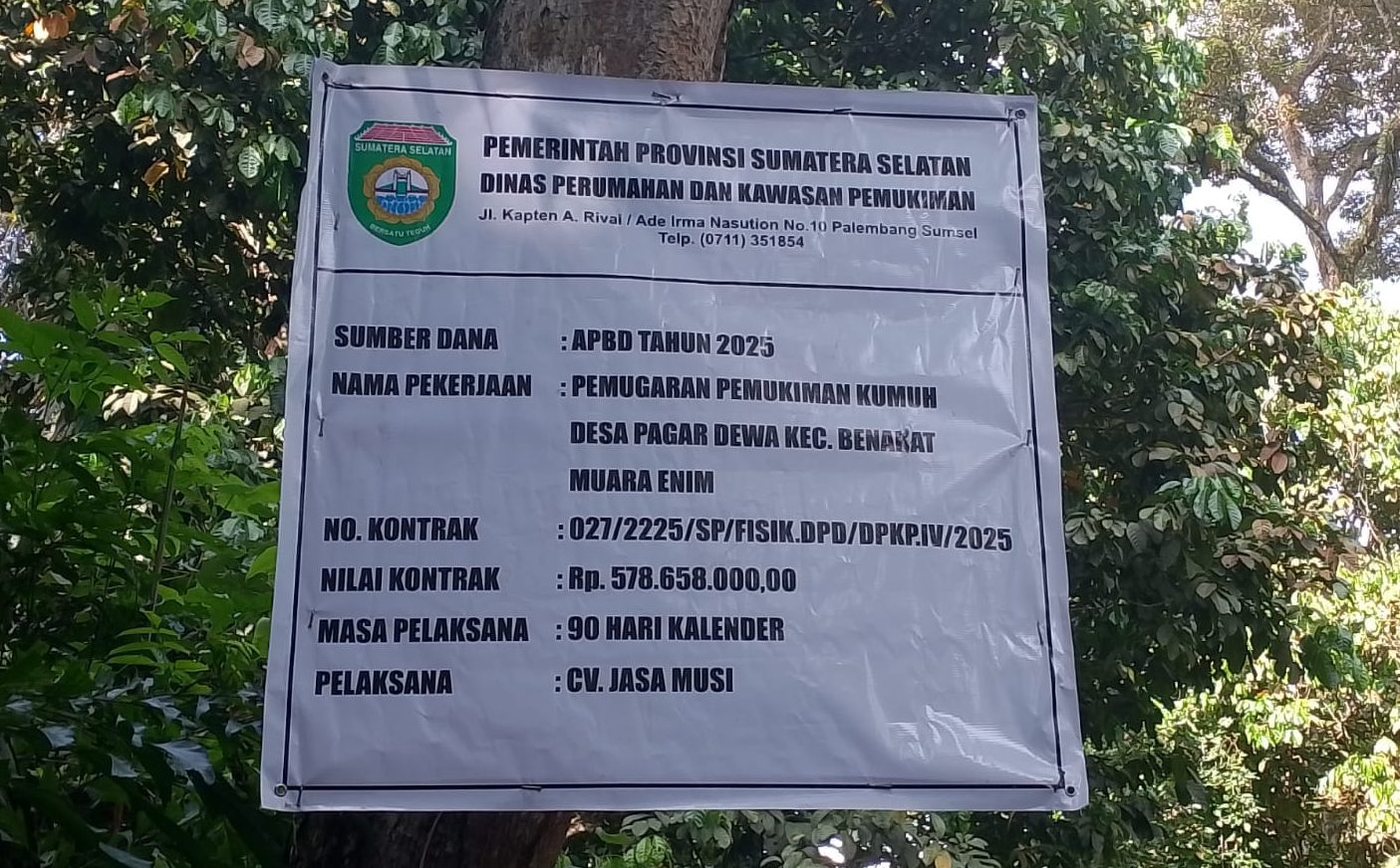 Proyek yang bersumber dari APBD Provinsi Sumatera Selatan Tahun Anggaran 2025 ini memiliki pagu anggaran senilai Rp578.658.000 dan dilaksanakan oleh CV. Jasa Musi. Namun, warga menilai pelaksanaannya tidak transparan serta diduga kuat tidak sesuai spesifikasi teknis.