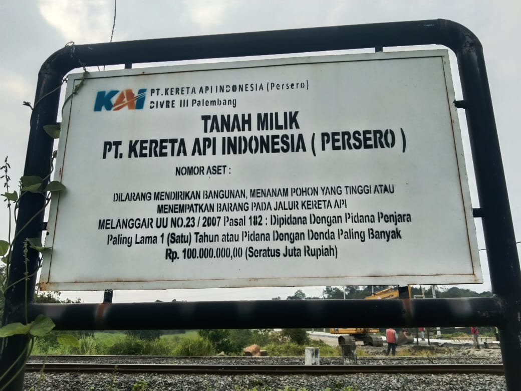 Pasalnya, di lokasi jalan yang melintasi rel terpampang jelas papan informasi bahwa tanah ini milik PT. KAI tidak boleh membangun dan menempatkan apa pun tanpa izin dari PT. KAI.