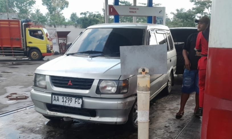 Awak media menemukan satu unit mobil Panther berwarna silver dengan nomor polisi (nopol) AA 1282 BK diduga melakukan praktik melangsir (mengangsu) solar subsidi di SPBU 44.562.09 Ngadirejo, Temanggung.