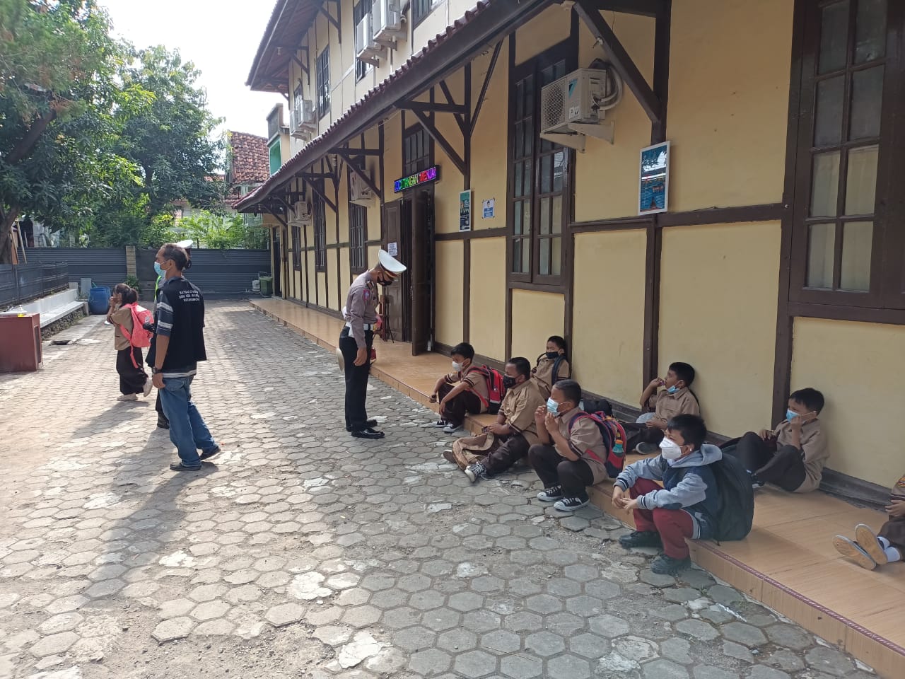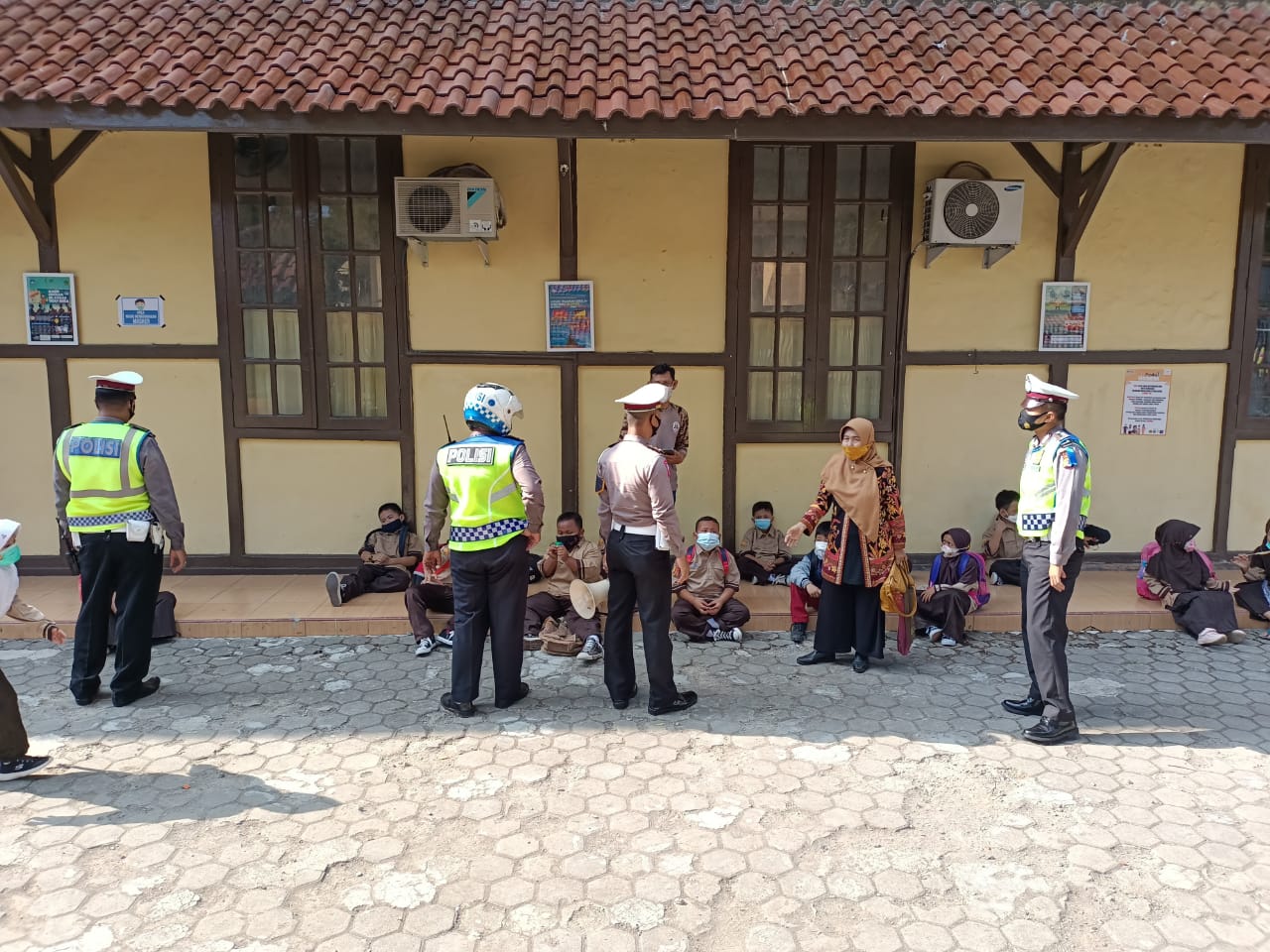 Kasatlantas AKP La Ode Habibi Ade Jama, S.IK., M.H., bersama jajarannya melaksanakan himbauan tertib berlalulintas kepada siswa siswi SD Kebon Baru, Kota Cirebon, Sabtu (25/09/2021)