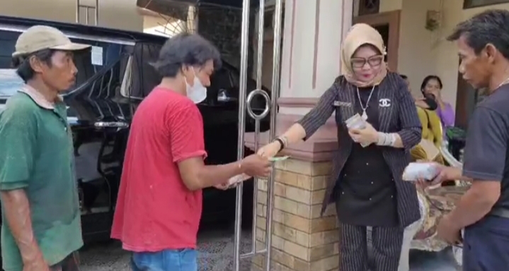 Pantauan jejakkasus.co.id, Bunda Ratu Ayu mengawali membagikan Nasi Bungkus dan uang tunai menjelang Salat Jumat kepada pekerja proyek, asisten rumah tangga dan tetangga dilingkungan tempat tinggalnya di Jalan Pembangunan, Kota Cirebon.