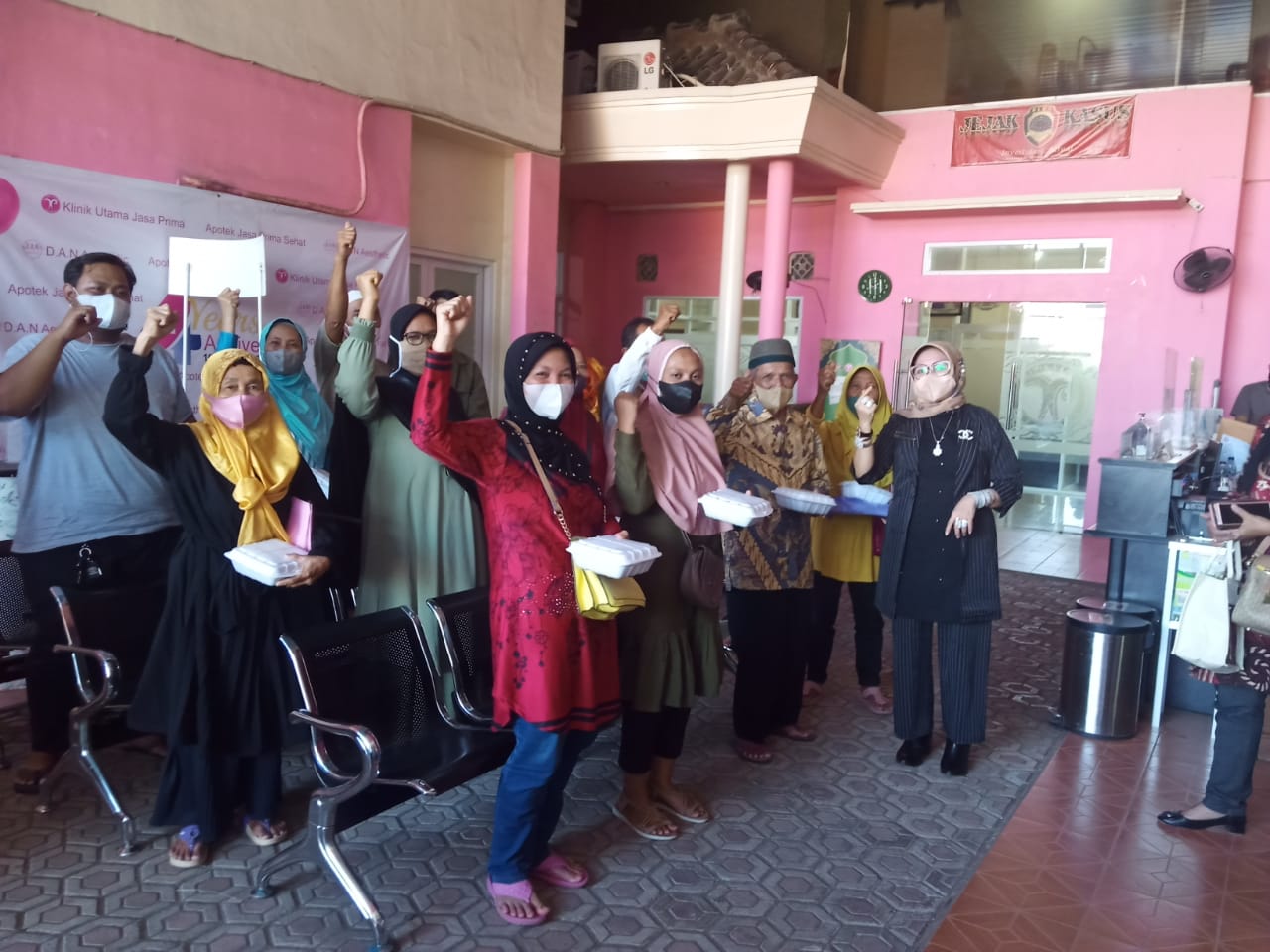 Selain itu, juga setelah Salat Jumat, membagikan Nasi Bungkus dan uang tunai kepada seluruh pegawai Jasa Prima Group, pasien Klinik Utama Jasa Prima dan kepada warga yang melintas didepan Klinik Utama Jasa Prima, Jalan Pilang Raya No.147, Pilangsari, Kecamatan Kedawung, Kabupaten Cirebon, Jawa Barat (Jabar).