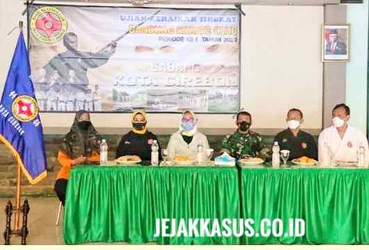 “Semoga bisa menjadi wadah bagi Atlet Karate di Kota Cirebon,” kata Wakil Wali Kota Cirebon Dra. Hj. Eti Herawati saat menghadiri Ujian Kenaikan Tingkat BKC Cabang Kota Cirebon periode ke-I tahun 2022 di Pendopo 76 Makodim 0614 Kota Cirebon, Provinsi Jawa Barat (Jabar), Minggu (20/3/2022).