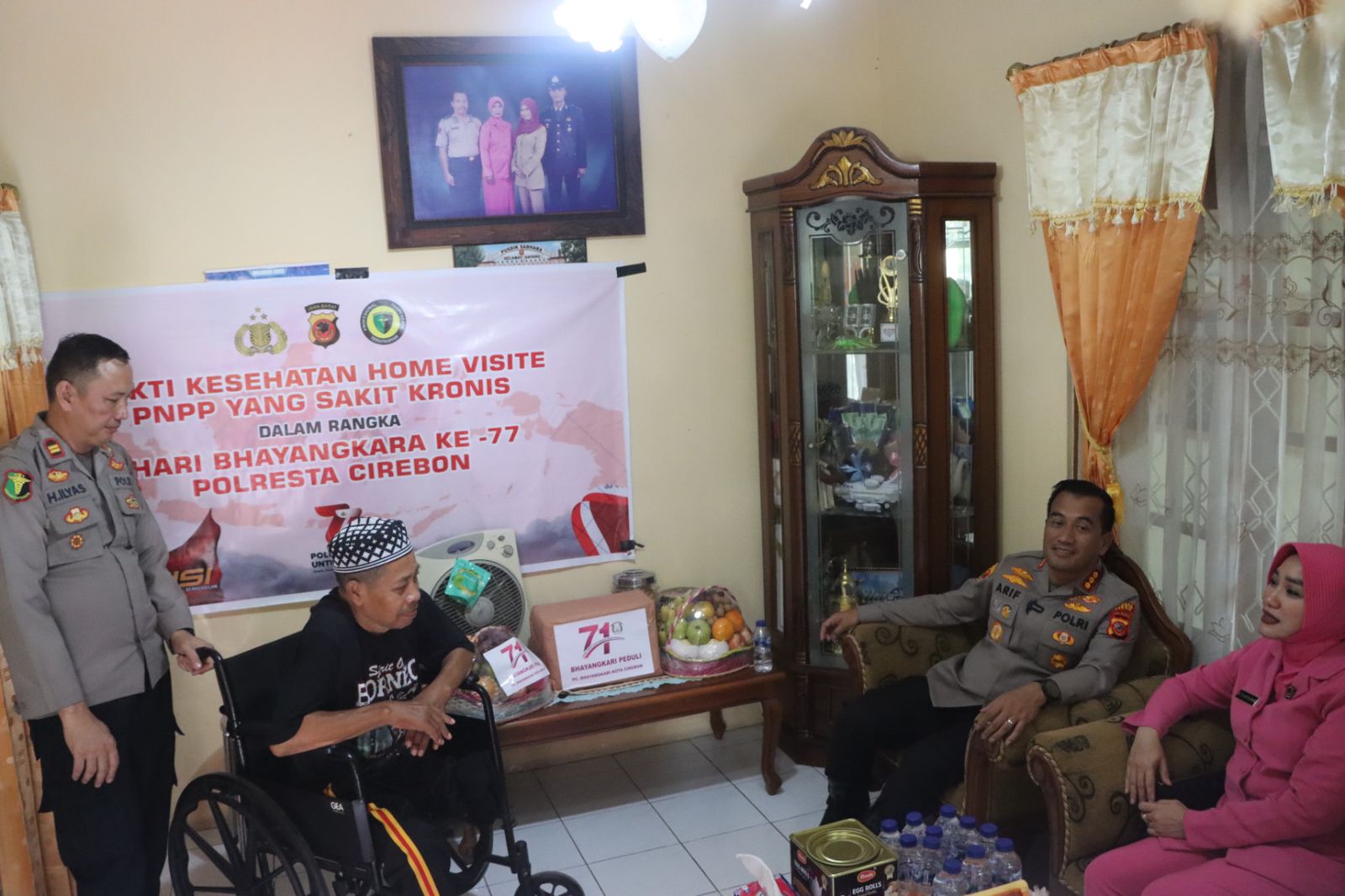 Kegiatan bakti kesehatan ini sebagai bentuk kepedulian pimpinan kepada anggota yang sedang mengalami sakit. Adapun dalam rangka Hari Bhayangkara kali ini, Kapolresta Cirebon menjenguk dua personel yang sedang mengalami sakit di rumahnya masing-masing.