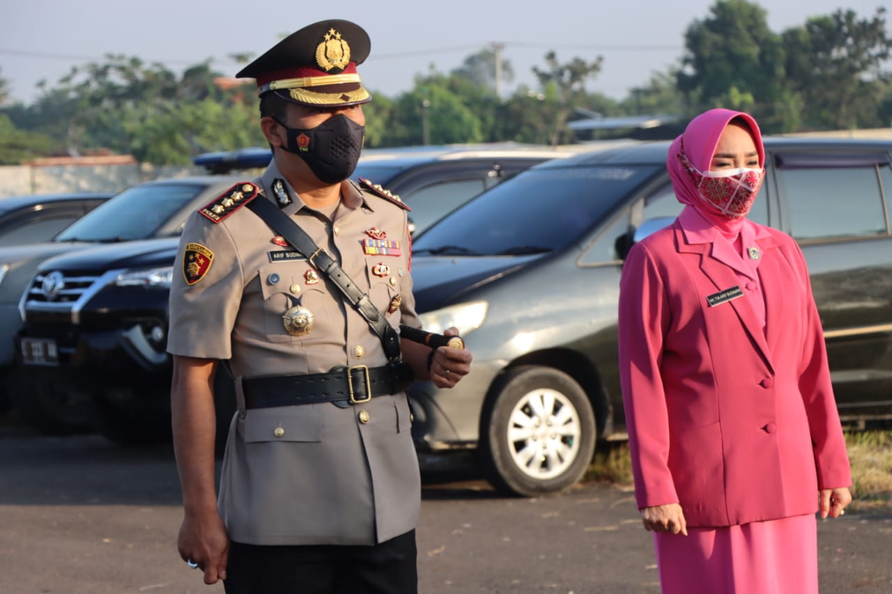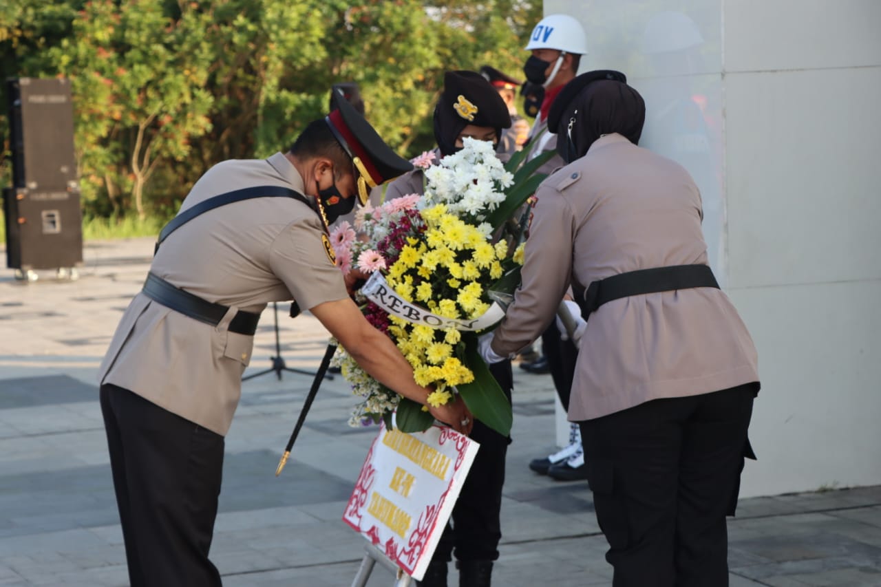 Kombes Pol. Arif Budiman, S.I.K., M.H., didampingi Ketua Bhayangkari Cabang Kota Cirebon Ny. Tia Arif Budiman mengawali prosesi Tabur Bunga ke Makam para Pahlawan di Kawasan tersebut.
