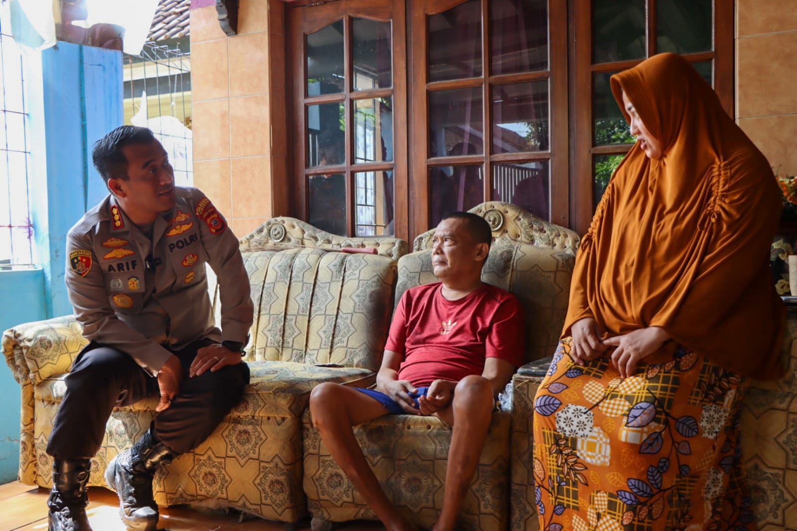 Foto: Kapolresta Cirebon Kombes Pol. Arif Budiman, S.I.K., M.H., saat menyambangi salah satu rumah anggota yang mengalami sakit.