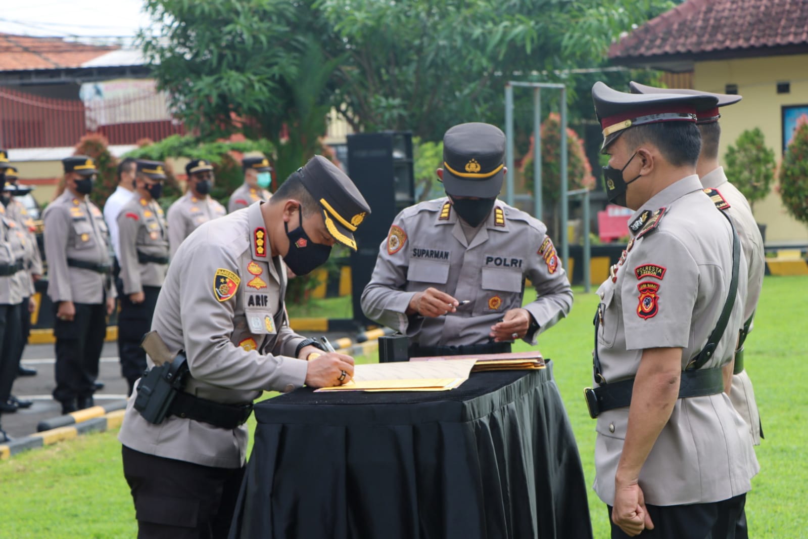 Pejabat yang melaksanakan Serah Terima Jabatan, yaitu Kasat Resnarkoba dari Kompol Danu Raditya Atmaja, S.E., S.I.K., M.H., (Pejabat Lama) kepada Kompol Dadang Garnadi, S.H., (Pejabat Baru), Kasat Binmas dari Kompol Tri Silayanto, S.H., (Pejabat Lama) kepada AKP Acep Anda, S.H., (Pejabat Baru).