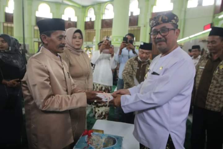 jejakkasus.co.id, CIREBON – Pemerintah Kabupaten (Pemkab) Cirebon menggelar peringatan Hari Santri Nasional (HSN) Tahun 2022 dengan mengadakan berbagai kegiatan, salah satunya Nikah Massal yang berlangsung di Masjid Agung Sumber, Kabupaten Cirebon, Jawa Barat (Jabar), Kamis (20/10/2022).