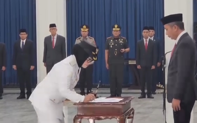 jejakkasus.co.id, BANDUNG – Pj (Penjabat) Gubernur Jawa Barat (Jabar) Bey Machmudin secara resmi melantik Dra. Hj. Eti Herawati, M.AP., sebagai Wali Kota Cirebon Masa Jabatan 2018-2023, bertempat di Gedung Sate, Bandung, Rabu (06/12/2023).