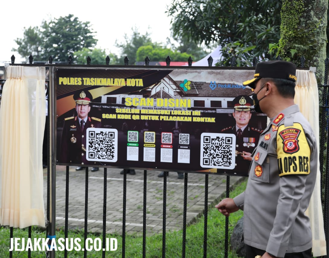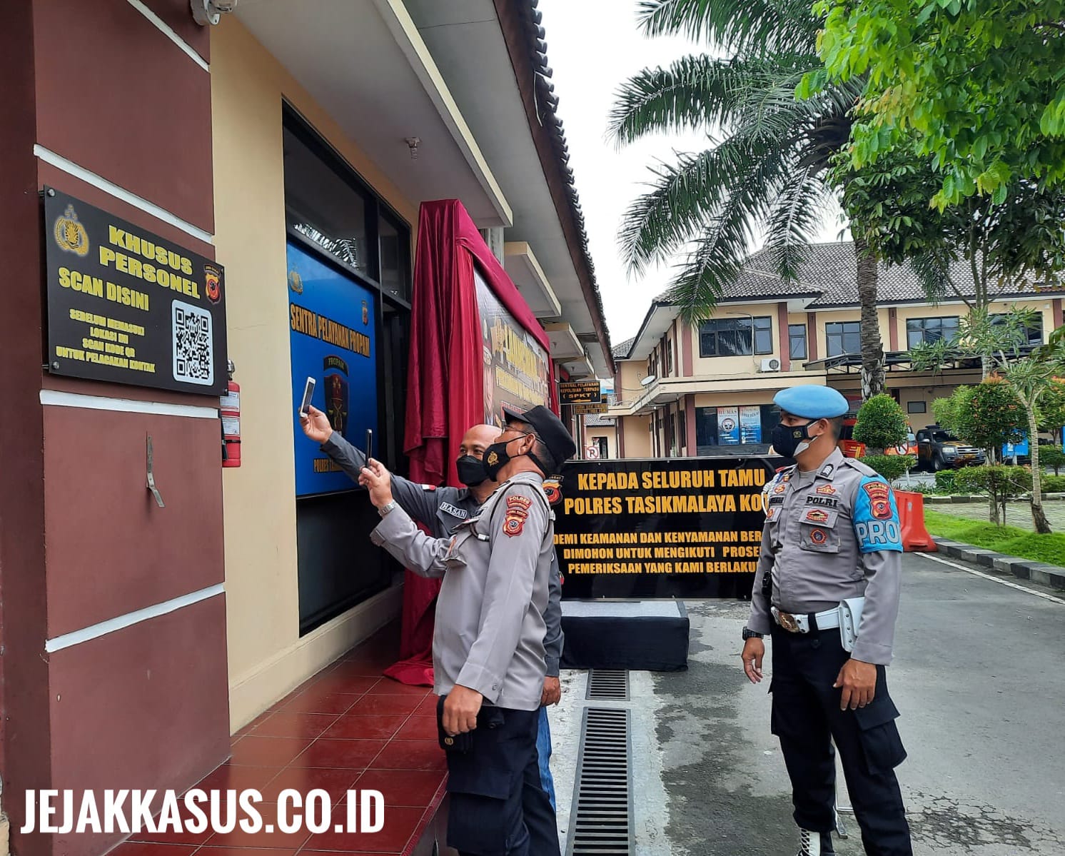 jejakkasus.co.id, TASIKMALAYA – Polres Tasikmalaya Kota, luncurkan Barcode aplikasi Peduli Lindungi yang berlaku di Mapolres dan seluruh Polsek Jajaran, Senin (27/09/21).