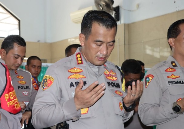 Foto: Kapolresta Cirebon Kombes Pol Arif Budiman saat ikuti Salat Gaib di Masjid Asslamul Qudus, Polresta Cirebon, Polda Jawa Barat.