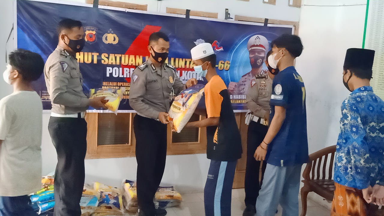 Kapolres Cirebon Kota AKBP M. Fahri Siregar, S.H., S.IK., M.H., melalui Kasatlantas AKP Habibi menuturkan, Baksos saat ini berupa pembagian Bahan Pokok berupa Beras dan Mie Instan kepada Anak Yatim Piatu dan Kaum Dhuafa dalam rangka HUT Lantas ke-66 bertempat di Yayasan Panti Asuhan Muawanah, Jalan Cendrawasih No.75 / 10 Penggung Utara, Kelurahan / Kecamatan Harjamukti, Kota Cirebon.