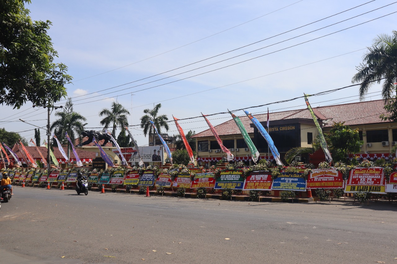 Pasalnya, banyak sekali Karangan Bunga yang terus berdatangan ke Mapolresta Cirebon di Hari Bhayangkara ke-76.