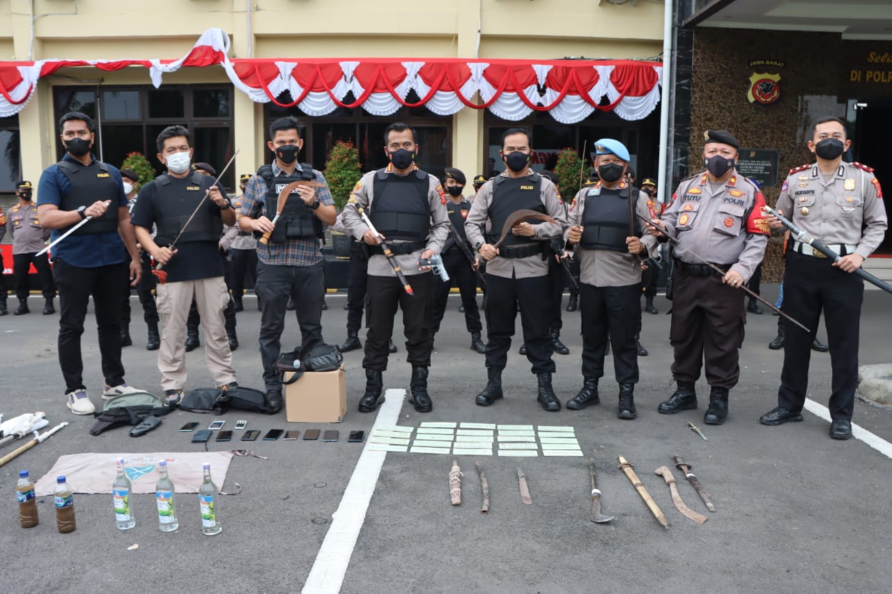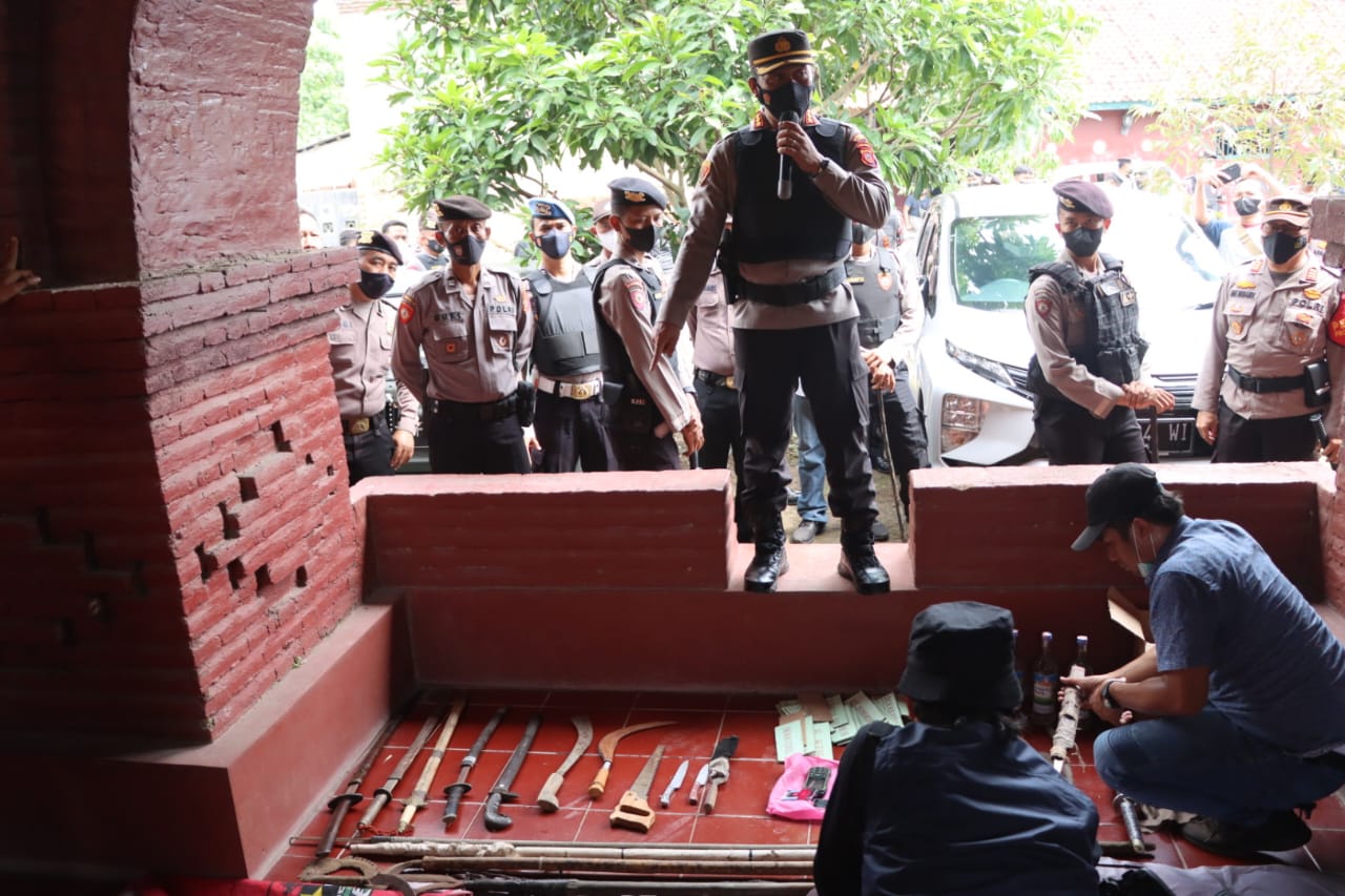 Selain itu, petugas juga mengamankan satu Pucuk Pistol Air Soft Gun, puluhan Senjata Tajam (Sajam) dari mulai Parang, Tombak, Celurit dan lainnya.