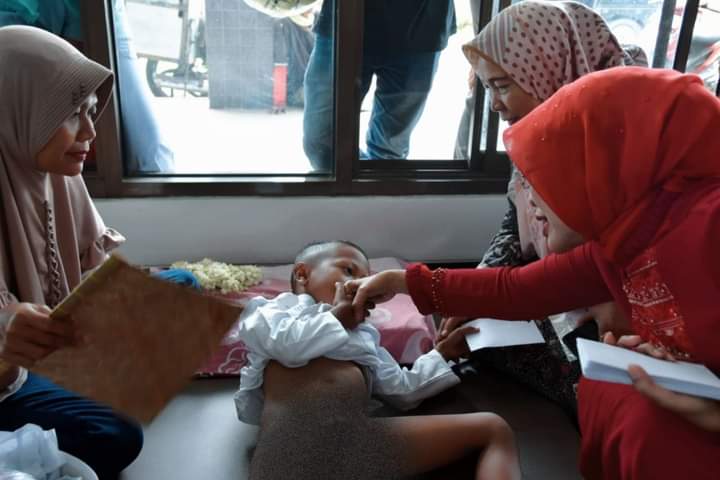 “Alhamdulillah ya sayang, sudah di Khitan sekarang. Semoga Allah SWT menjadikanmu anak yang Shaleh, berbhakti kepada orangtua dan berguna bagi Nusa, Bangsa dan Agama Aamiin,” ucap Bunda Ayu kepada salah satu peserta Khitan Massal.