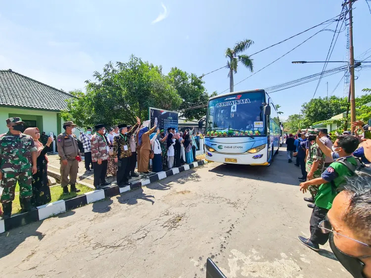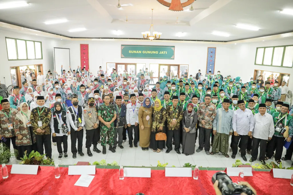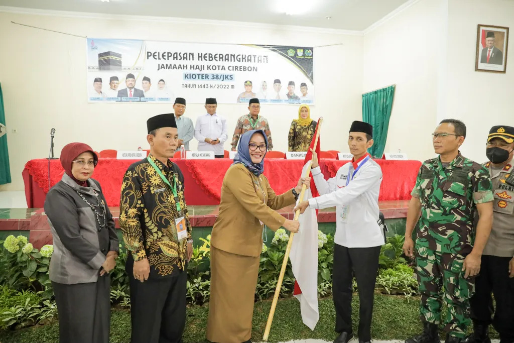 jejakkasus.co.id, CIREBON – Wakil Wali Kota Cirebon Dra. Hj. Eti Herawati melepas keberangkatan 158 Jemaah Haji dari Kota Cirebon beserta 4 Jemaah warga Kabupaten Cirebon di Makorem 063/Sunan Gunung Jati, Kota Cirebon, Jawa Barat (Jabar), Selasa (28/6/2022).