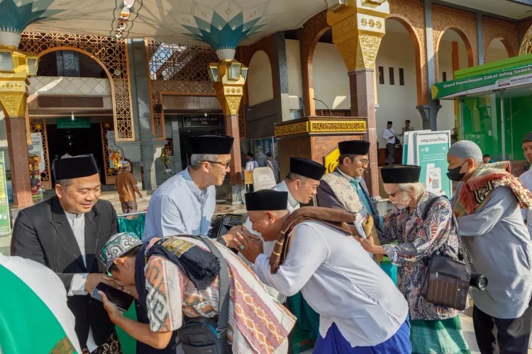 jejakkasus.co.id, CIREBON – Wali Kota Cirebon Drs. H. Nashrudin Azis, S.H., dan Wakil Wali Kota Dra. Hj. Eti Herawati serta Sekretaris Daerah (Sekda) Drs. H. Agus Mulyadi, M.Si., turut menunaikan Ibadah Salat Idul Fitri 1 Syawal 1444 Hijriah/2023 Masehi dan berbaur dengan Jemaah lainnya.