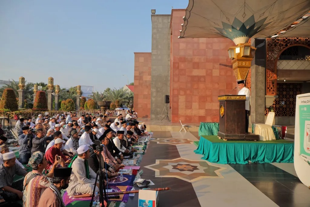 Sebelum pelaksanaan Salat Ied Azis menyampaikan, dengan Takbir, Tahlil, Tahmid dan kesadaran untuk saling memaafkan, sukacita Idul Fitri diharapkan dapat memberikan kebahagiaan bagi masyarakat serta menguatkan sisi spiritual dan kesalehan sosial masing-masing.