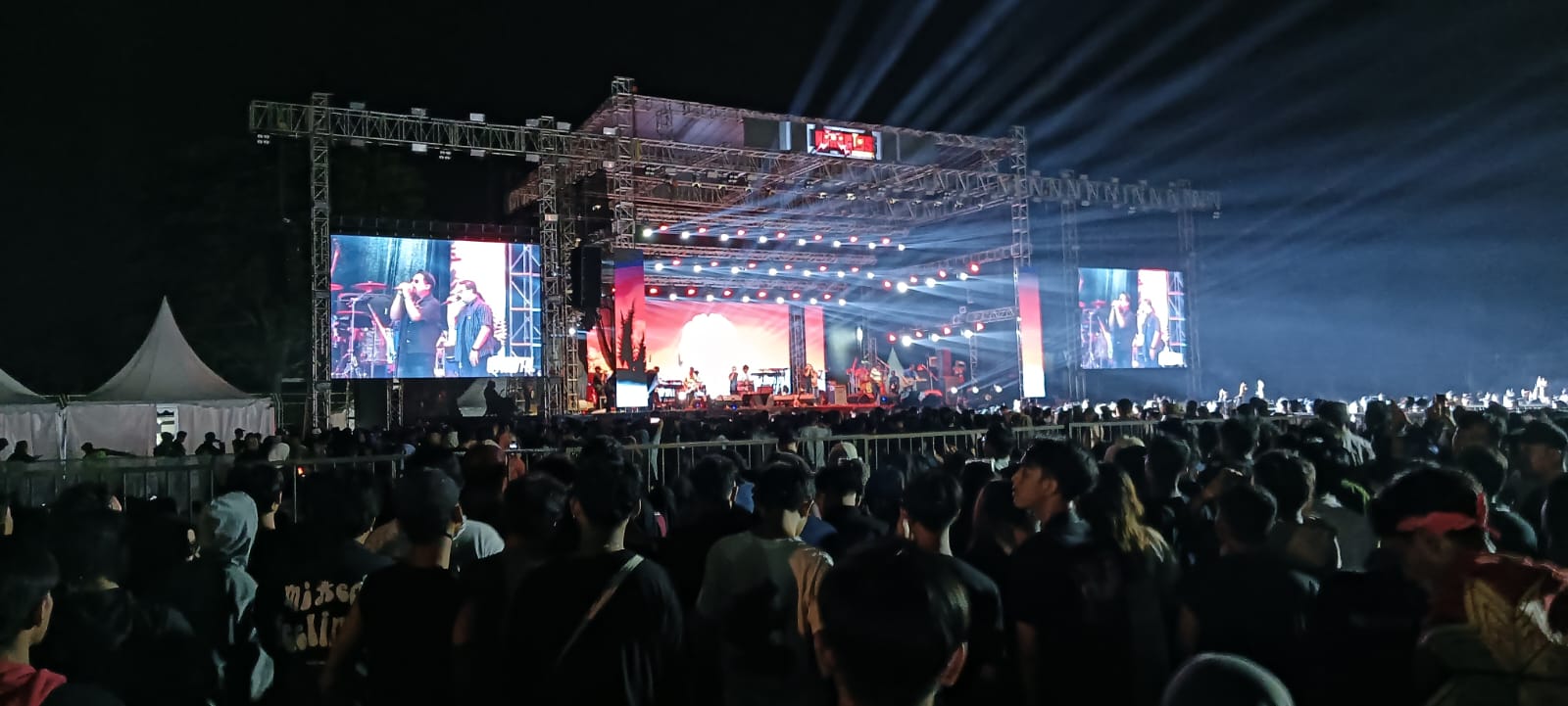 Meski gerimis turun saat Band Legendaris itu naik ke Panggung, ribuan Penonton tetap bertahan, dan justru semakin bersemangat menyanyikan lagu-lagu hits mereka.
