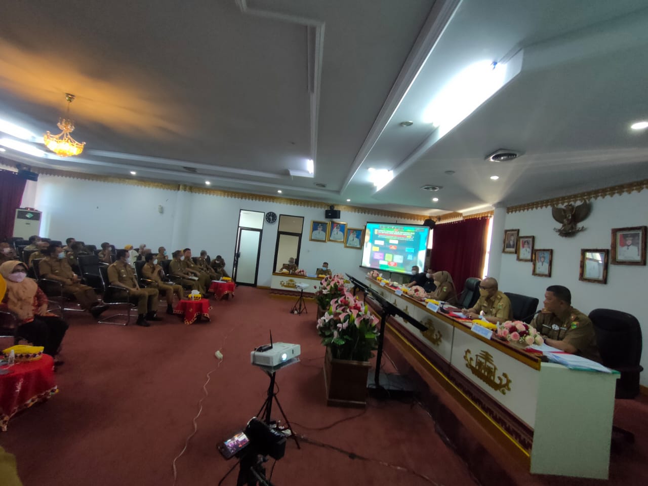 jejakkasus.co.id, TANGGAMUS – Bupati Tanggamus Hj. Dewi Handajani mengikuti secara virtual penilaian Tahap III Penghargaan Pembangunan Daerah (PPD) Tahun 2022 Kabupaten Tanggamus dari Deputi Bidang Pemantauan Evaluasi dan Pengendalian Pembangunan Kementerian Perencanaan Pembangunan Nasional/Bappenas RI oleh Tim Penilai Independen (TPI) Tim Penilai Utama (TPU) dan Tim Penilai Teknis (TPT) Pusat bertempat di Ruang Rapat Utama Sekretariat Daerah, Kabupaten Tanggamus, Provinsi Lampung, Senin (11/4/2022).
