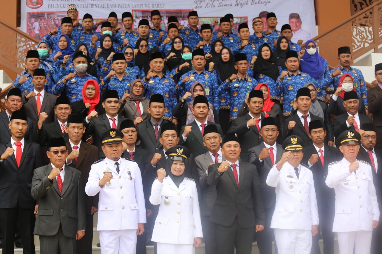 jejakkasus.co.id, LAMPUNG BARAT – Menjelang Purna Bhakti, Bupati Lampung Barat (Lambar) H. Parosil Mabsus melantik 77 pejabat yang terdiri dari Eselon II, III, dan IV di Pelataran Lamban Pancasila, Senin (28/11/2022).