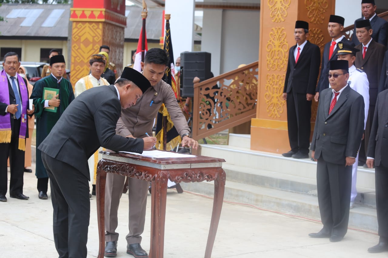 “Selain itu, Lamban Pancasila ini baru saja diresmikan tanggal 24 November 2022 lalu, hari ini sengaja mengambil momentum Pelantikan ini dihadapan Lamban Pancasila, diharapkan menjadi sebuah sejarah sekaligus kebanggan dan histori bagi kita semua,” pungkasnya.