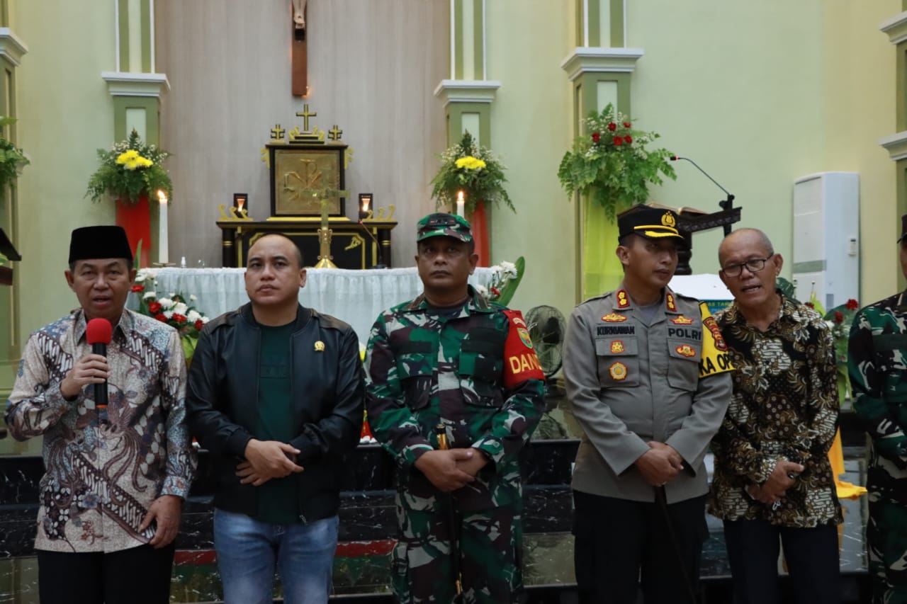 jejakkasus.co.id, LAMPUNG UTARA – Kapolres Lampung Utara (Lampura) AKBP Kuriawan Ismail, S.H., S.I.K., M.I.K., memantau langsung personil yang melaksanakan tugas pengamanan di Gereja-Gereja di Kotabumi untuk memastikan keamanan pelaksanaan Natal 2022, Minggu (25/12/2022).