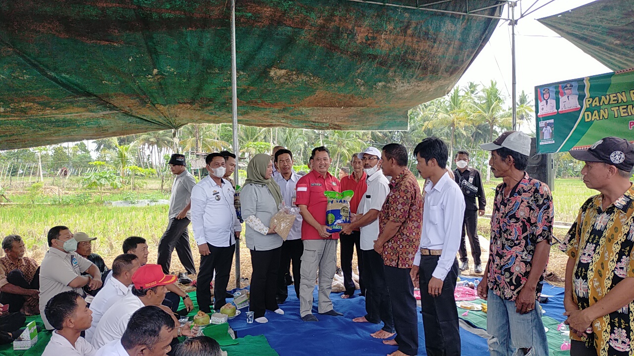 jejakkasus.co.id, TANGGAMUS – Wakil Bupati (Wabup) Tanggamus Hi. A.M. Syafi’i, S.Ag., membuka Panen Raya Padi Varietas Unggul Lokal (MSP) 13 B bertempat di Tengah Sawah Pekon Banyuurip, Kecamatan Wonosobo, Kabupaten Tanggamus, Lampung, Rabu (13/07/2022).