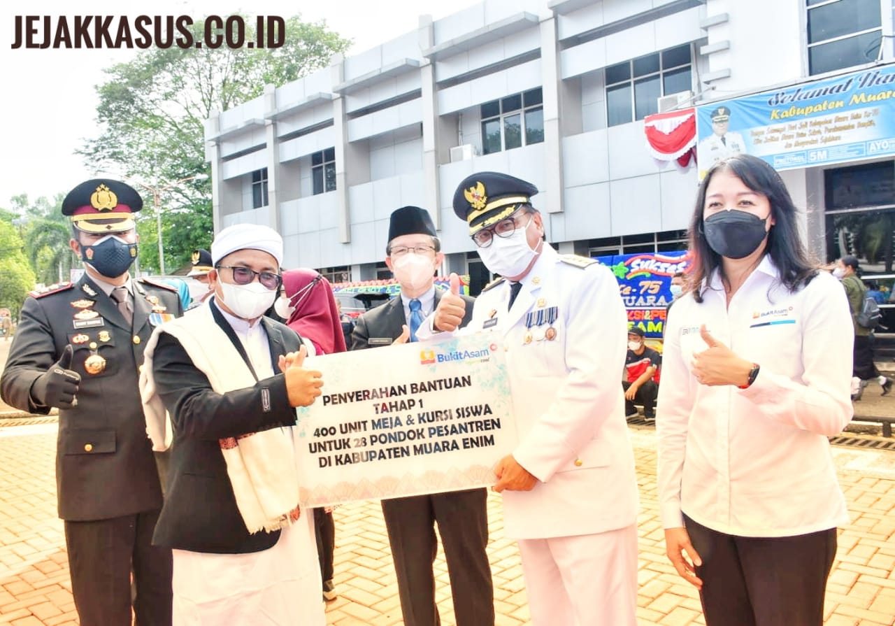 Tepat diusia ke-75 tahun Kabupaten Muara Enim, syukur Alhamdulillah, Bukit Asam masih bisa berkontribusi untuk pembangunan di Kabupaten Muara Enim dengan bantuan yang memang diperlukan masyarakat dan Pemerintah Daerah (Pemda).