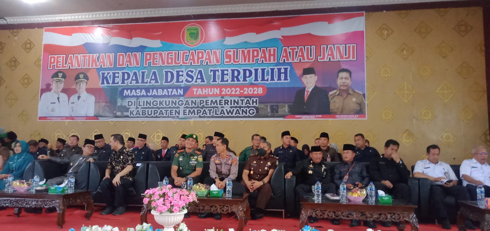 Pelantikan dan pengambilan sumpah jabatan kepada 103 Kepala Desa terpilih tersebut bertempat di Gedung Serba Guna Pemerintah Kabupaten (Pemkab) Empat Lawang, Provinsi Sumatera Selatan (Sumsel), Kamis (08/09/2022).