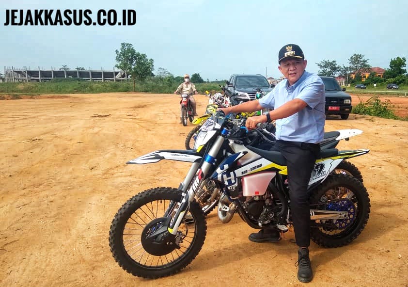 Dalam kesempatan itu, tampak Enos bercengkrama akrab dengan para kepala OPD dan pencinta Motocross. (Yoga JK/ Tim)