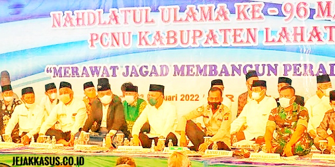 jejakkasus.co.id, LAHAT – Bertempat di pendopoan rumah dinas ( rudin) Bupati Lahat, diadakan kegiatan dalam rangka Peringatan Hari Lahir Nahdlatul Ulama Ke-96 M/99 H PCNU Kabupaten Lahat, Provinsi Sumatera selatan, yang mengusung tema “Merawat Jagad Membangun Peradaban“.Kamis (3/2/2022).