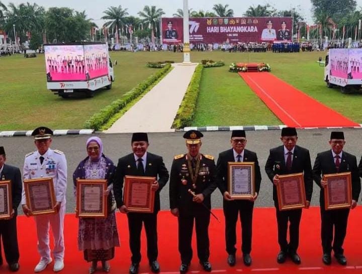 jejakkasus.co.id, EMPAT LAWANG – Bupati Empat Lawang Dr. H. Joncik Muhammad, S.Si., S.H., M.M., M.H., terima Penghargaan PIN Emas Kapolri dari Kapolda Sumatera Selatan (Sumsel) bertempat di Griya Agung saat Hari Ulang Tahun (HUT) Bhayangkara ke-77 Tahun 2023.