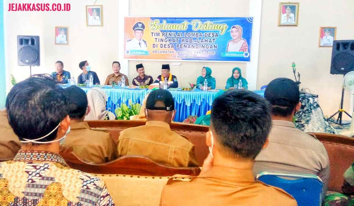 Kades Leo Andika menyambut Tim Penilai Lomba Desa bertempat di Desa Penandingan, Kecamatan Tanjung Sakti Pumi.