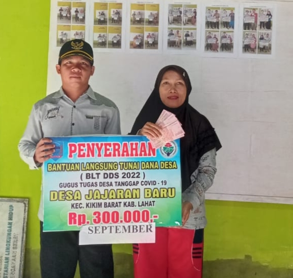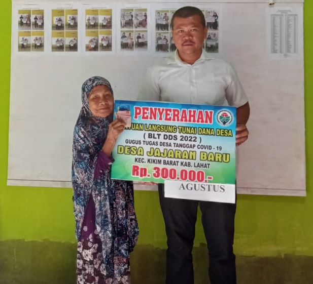 jejakkasus.co.id, LAHAT – Pemerintah Desa (Pemdes) Jajaran Baru kembali menyalurkan Bantuan Langsung Tunai (BLT) Dana Desa (DD) tahap III tahun 2022 kepada 119 Keluarga Penerimaan Manfaat (KPM) di Kantor Desa Jajaran Baru, Kecamatan Kikim Barat, Kabupaten Lahat, Sumatera Selatan, Jumat (12/8/2022).