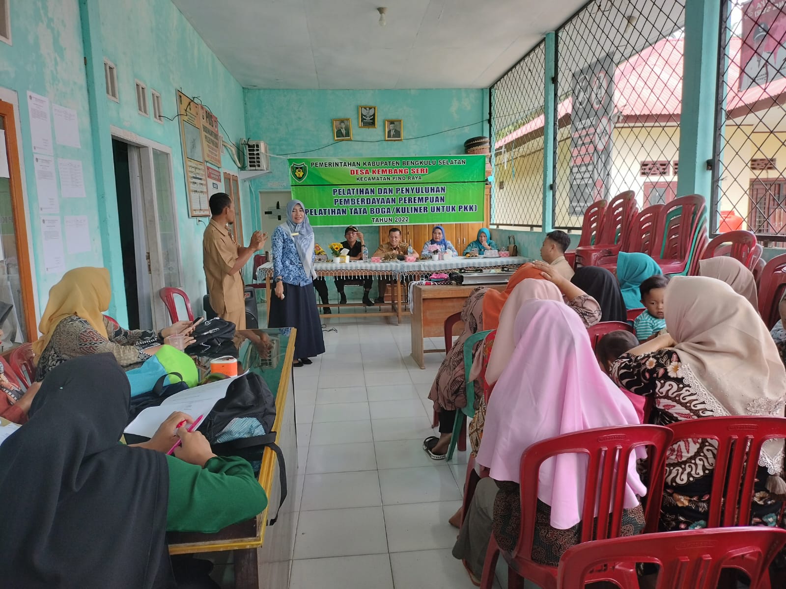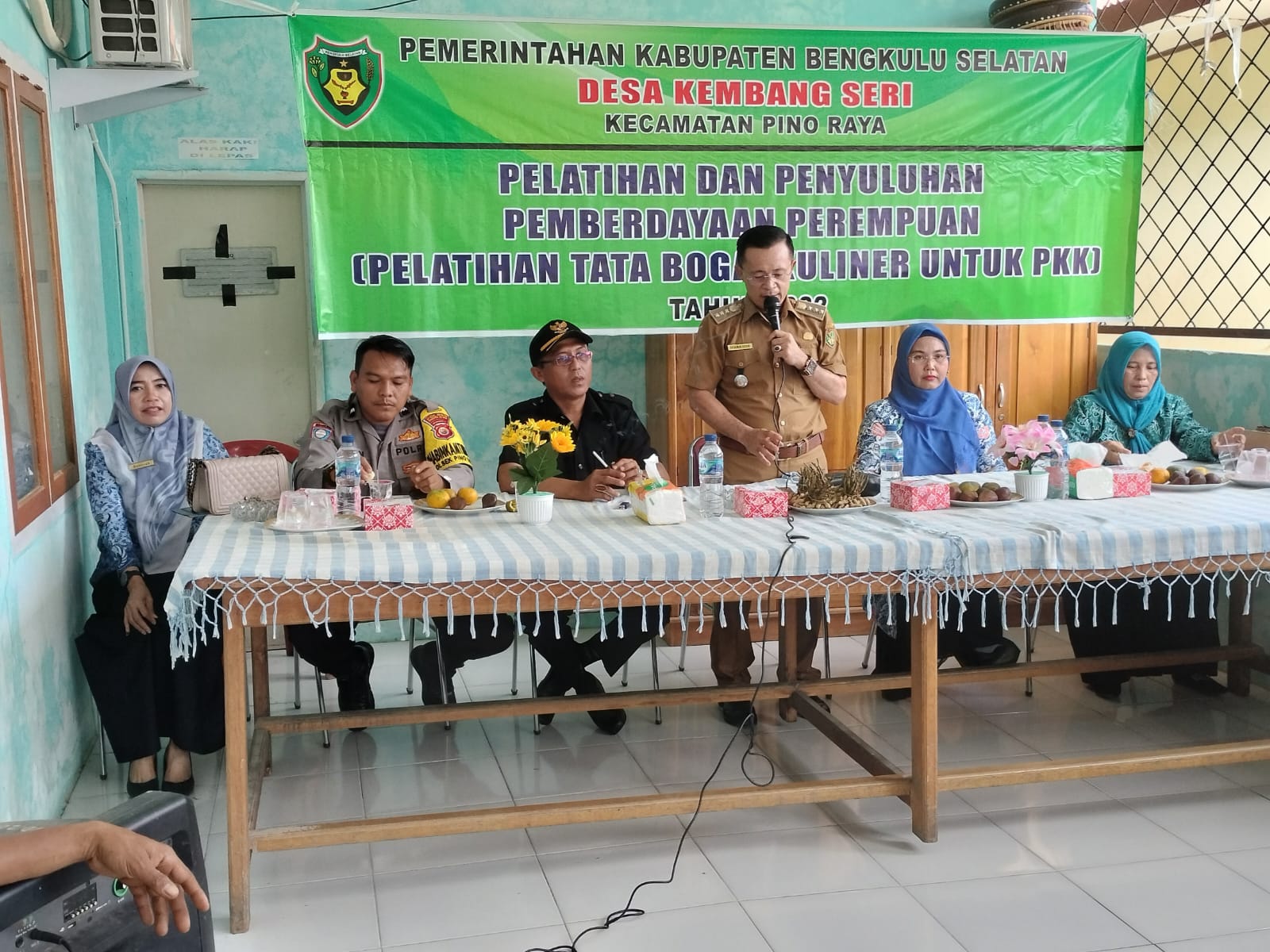 jejakkasus.co.id, BENGKULU SELATAN – Pemerintah Desa (Pemdes) Kembang Seri, Kecamatan Pino Raya mengadakan pelatihan dan penyuluhan pemberdayaan perempuan dan Tata Boga, Kuliner untuk PKK di Gedung Kantor Desa Kembang Seri, Selasa (29/11/2022).