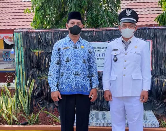 Sebelum upacara, Kepala SDN 01 Trans Batumerta VII menyampaikan pesan agar masyarakat tetap mematuhi Prokes jangan terlena dengan keadaan Madang Suku III zona hijau, harus di pertahankan agar anak tetap bisa belajar tatap muka.