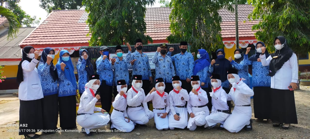 jejakkasus.co.id, OKU Timur – Pemerntah Desa (Pemdes) Sidomulyo melaksanakan peringatan Hari Ulang Tahun (HUT) RI ke-76 tahun 2021 di halaman SDN 01 Trans Batu Marta VII, Kecamatan Madang Suku III dengan penerapan Protokol Kesehatan (Prokes) sangat ketat, Selasa (17/08/2021).