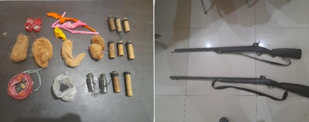 Setelah dilakukan penggeledahan, ditemukan 2 (Dua) Pucuk Senjata Api Rakitan jenis Kecepek di belakang Pintu, dan di atas Plapon. Juga ditemukan Amunisi di dalam Tas.