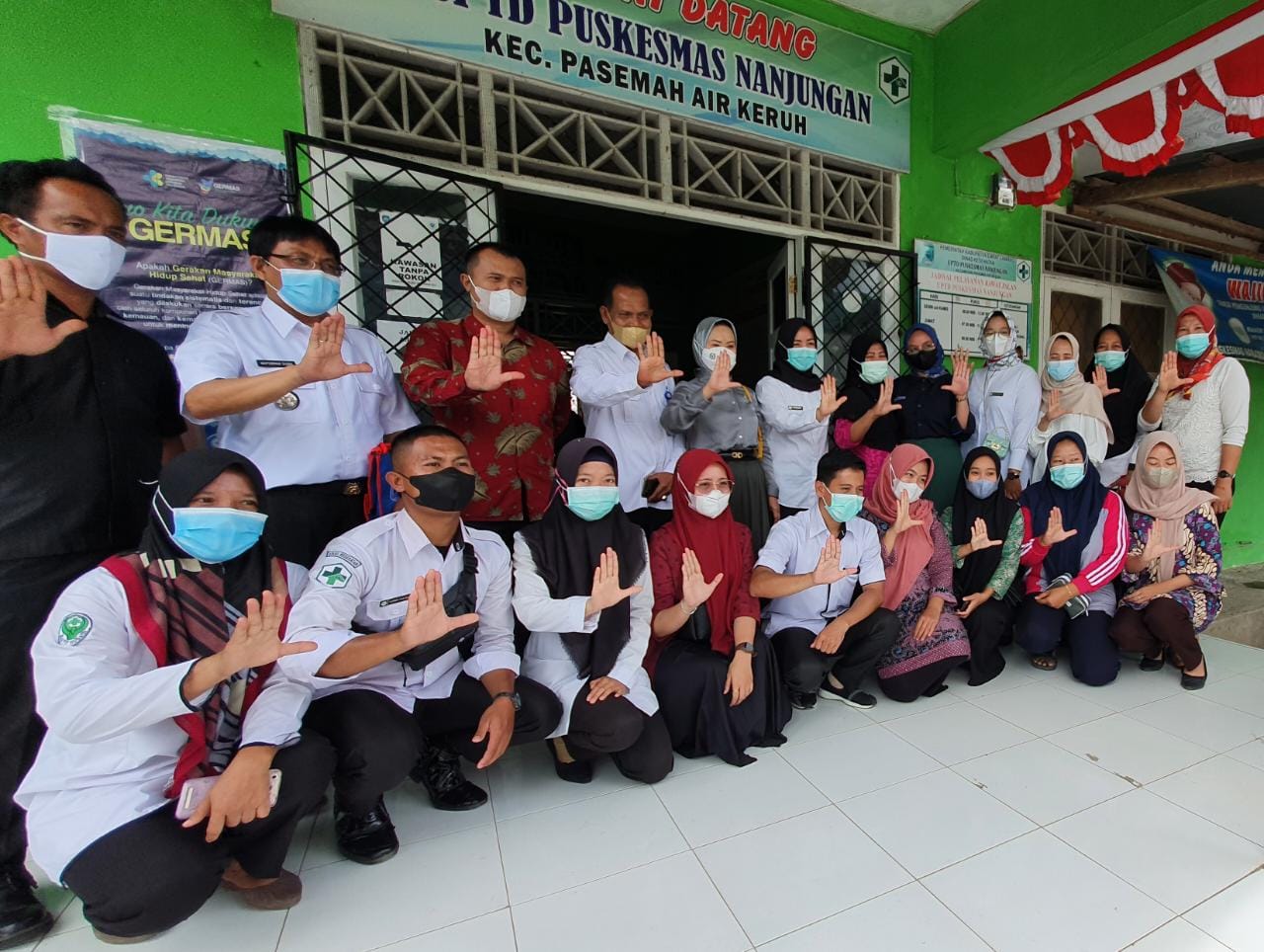 Pantauan jejakkasus.co.id, diakhir kunjungan Hj. Sri Meliyana ke Puskesmas Nanjungan diadakan Photo bersama sebagai kenangan-kenangan, Rabu (02/03/2022). (Sulman/Red)