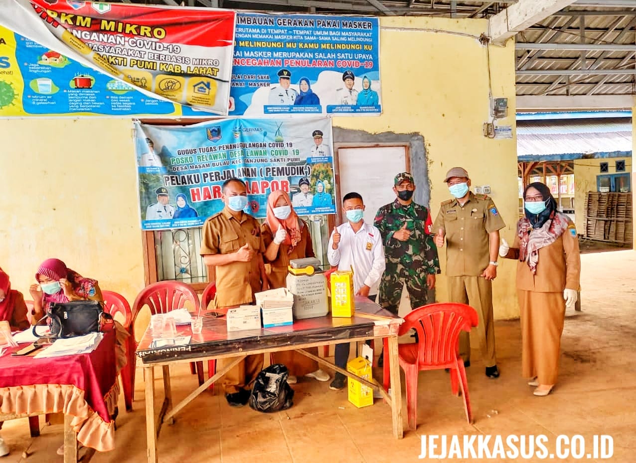 jejakkasus.co.id. LAHAT – Unit Pelayanan Teknis Daerah (UPTD) Puskesmas Tanjung Sakti Pumi menggelar kegiatan vaksinasi di Desa Masam Pulau dan SMPN 1 Tanjung Sakti Pumi, Kecamatan Tanjung Sakti Pumi Kabupaten Lahat, Provinsi Sumatera Selatan, Senin (15/11/2021).